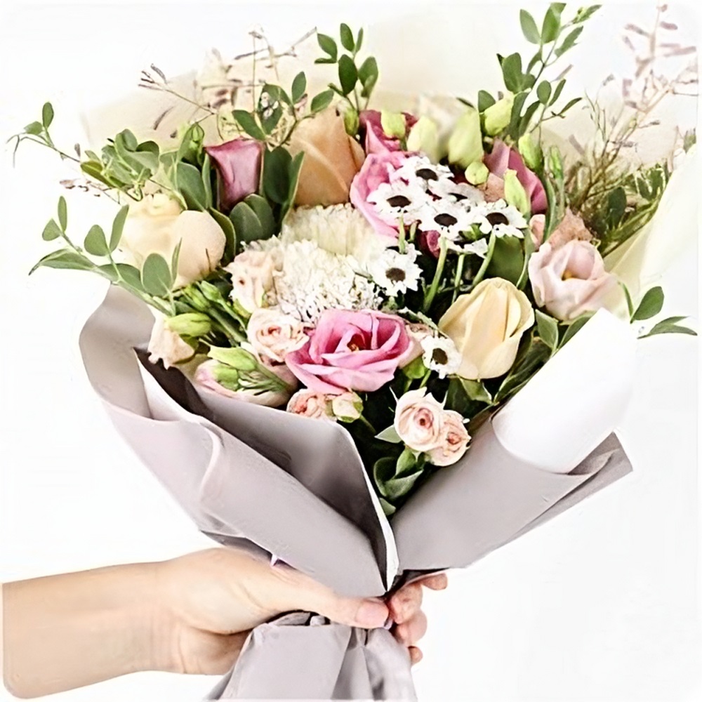Skład: Sezonowe kwiaty + przybranie = świeży bukiet!