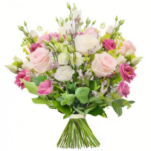 Skład: Róże, Buplerum, Eustomy, Limonium, Zieleń dekoracyjna
